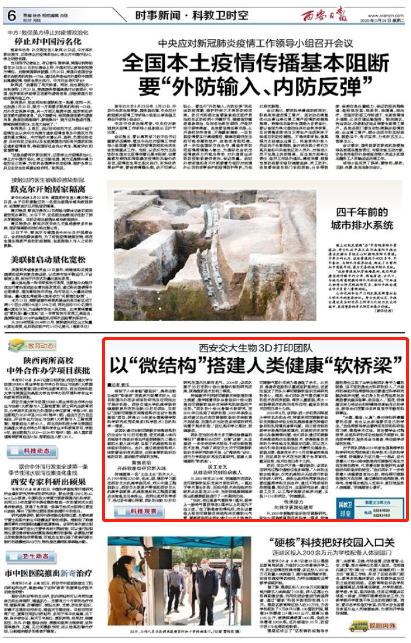 【西安日报】西安交大生物3D打印团队:以“微结构”搭建人类健康“软桥梁”