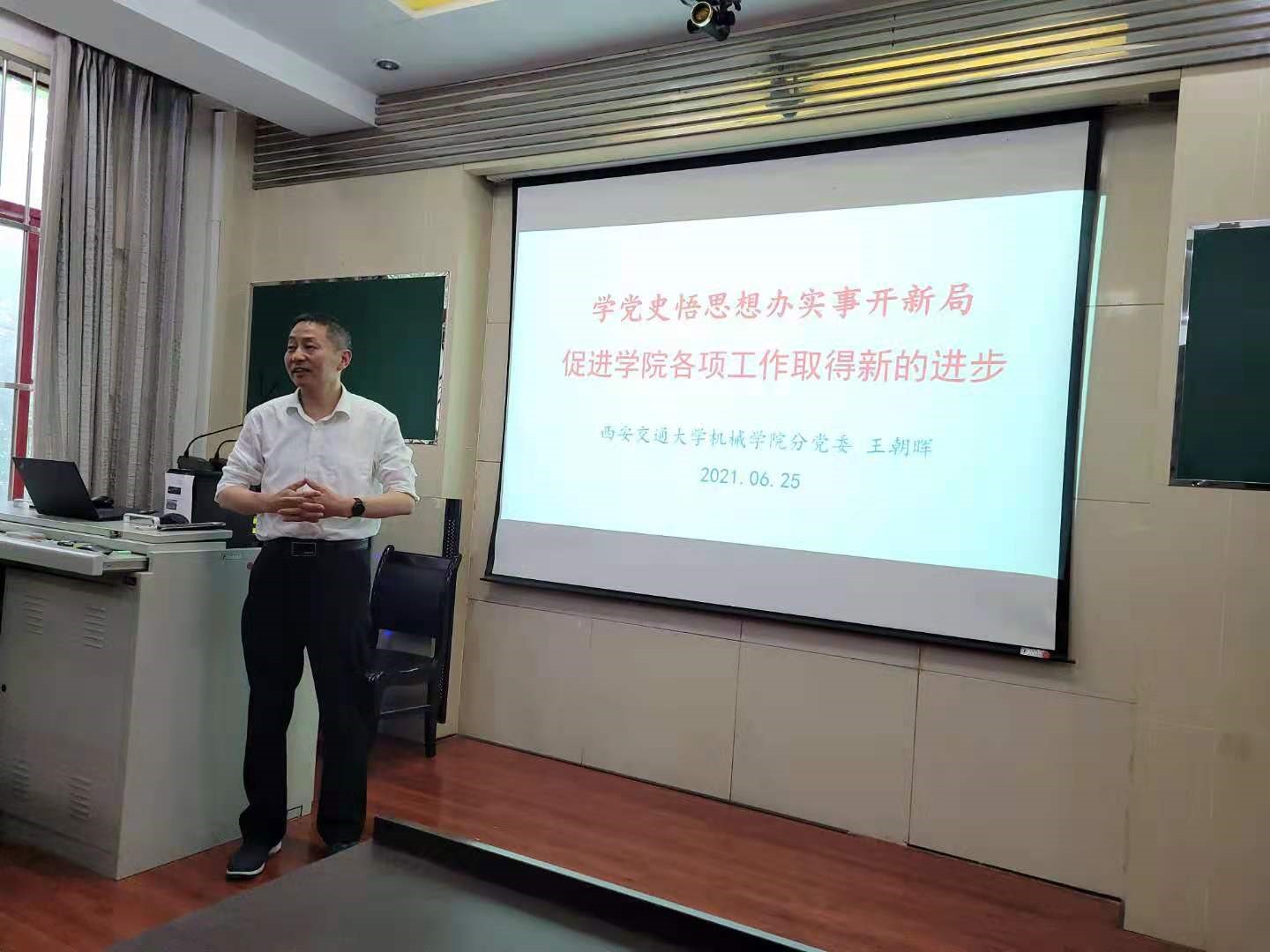 6月25日,机械学院机器人与智能系统研究所支部开展组织生活会,机械工程学院党委书记王朝晖参加支部会并以“学党史悟思想办实事开新局——促进学院各项工作取得新的进步”为主题为研究所师生党员讲专题党课。会议由支...