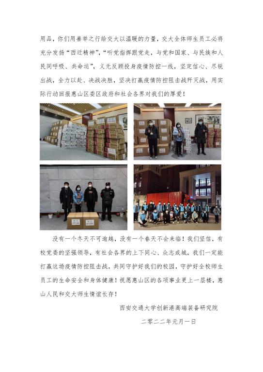 在全校师生加班加点,戮力同心战“疫”之时,无锡市惠山区委政府快速响应、紧急驰援,筹集了20万只医用口罩、2000瓶消毒凝胶、2000瓶消毒酒精等抗疫物资无偿捐赠给西安交通大学机械学院,这种无私奉献的义行善举,让...