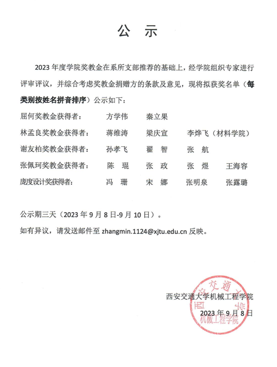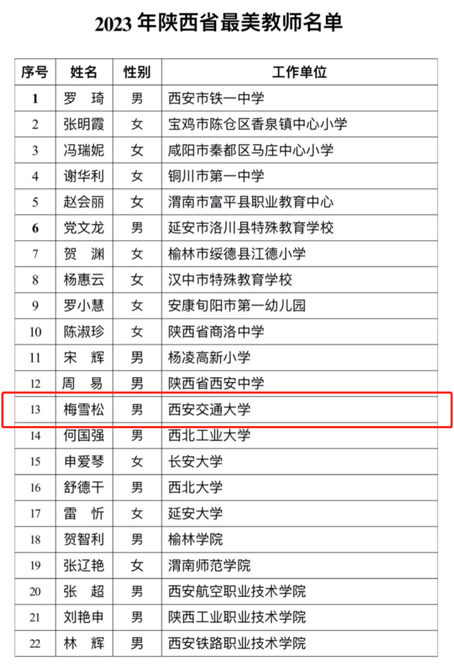 西安交大机械工程学院梅雪松教授入选2023年陕西省最美教师名单