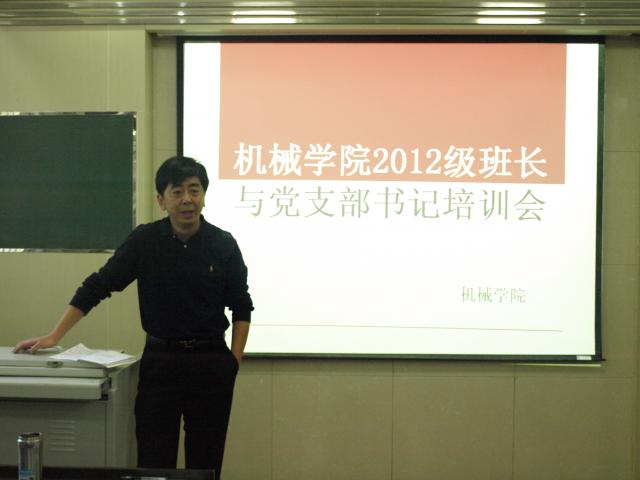 2012年9月14日下午,机械学院2012级班长与党支部书记培训会在学院第三会议室隆重举行。出席此次会议的有机械学院常务副院长洪军教授,副院长訾艳阳教授,诊断所曹军义副教授,学校党委组织部许佳辉老师,文治书院刘艳...