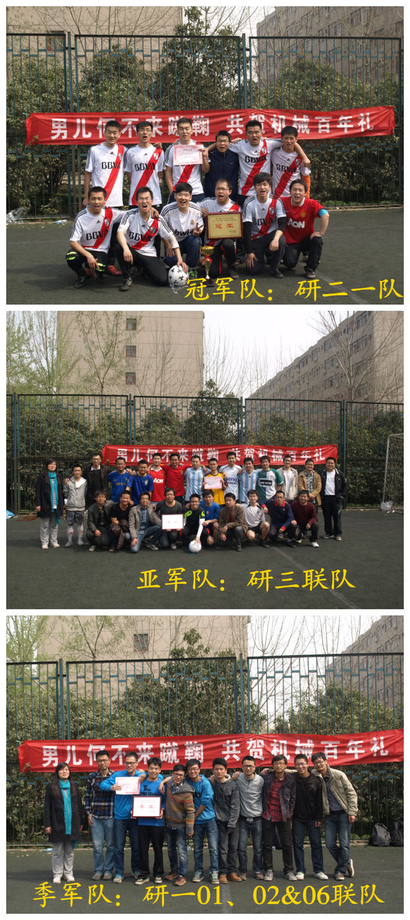 2013年3月4日到3月15日,由机械学院团工委主办、机械学院研究生会承办的 “百年机情”杯足球比赛在西安交通大学西足球场激情上演。本次比赛采用联队形式,旨在增强不同班级之间的沟通和协作,加强体育锻炼,繁荣校园...