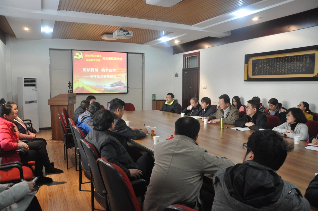 ——机械学院仪器系党支部、国际教育学院党支部联合支部活动 2015年12月18日下午,机械学院仪器系教工党支部、国际教育学院党支部联合支部活动在机械学院第一会议室举行。机械学院负责留学生教务的老师,国际教育学院...