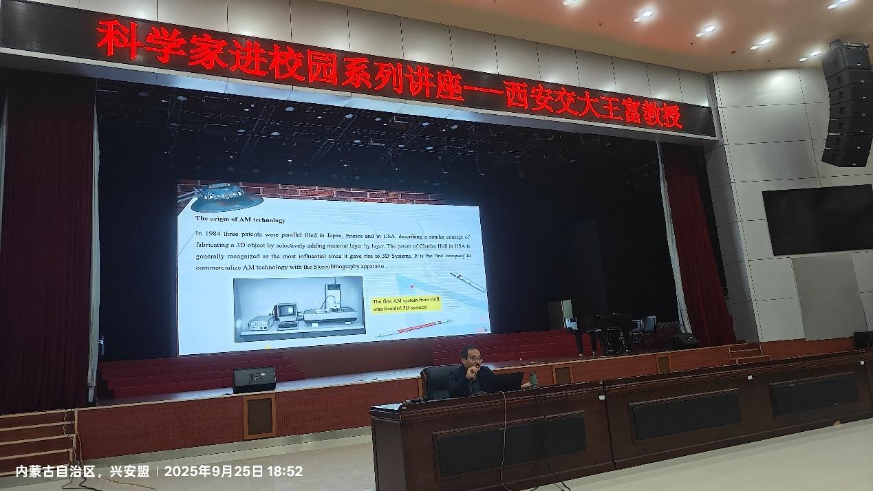 近日,机械工程学院青年拔尖人才、特聘教授王富走进内蒙古乌兰浩特第一中学、乌兰浩特第四中学和突泉县第一中学,为中学生做了一场精彩的"增材制造技术及其应用"的科普讲座。此次活动既是面向中学生的科技知识普及,也是吸引优秀学子报考我院的重要组成部分。