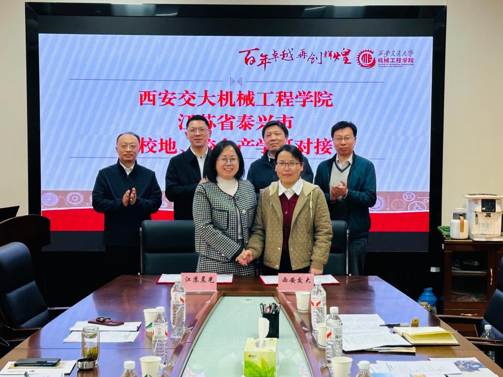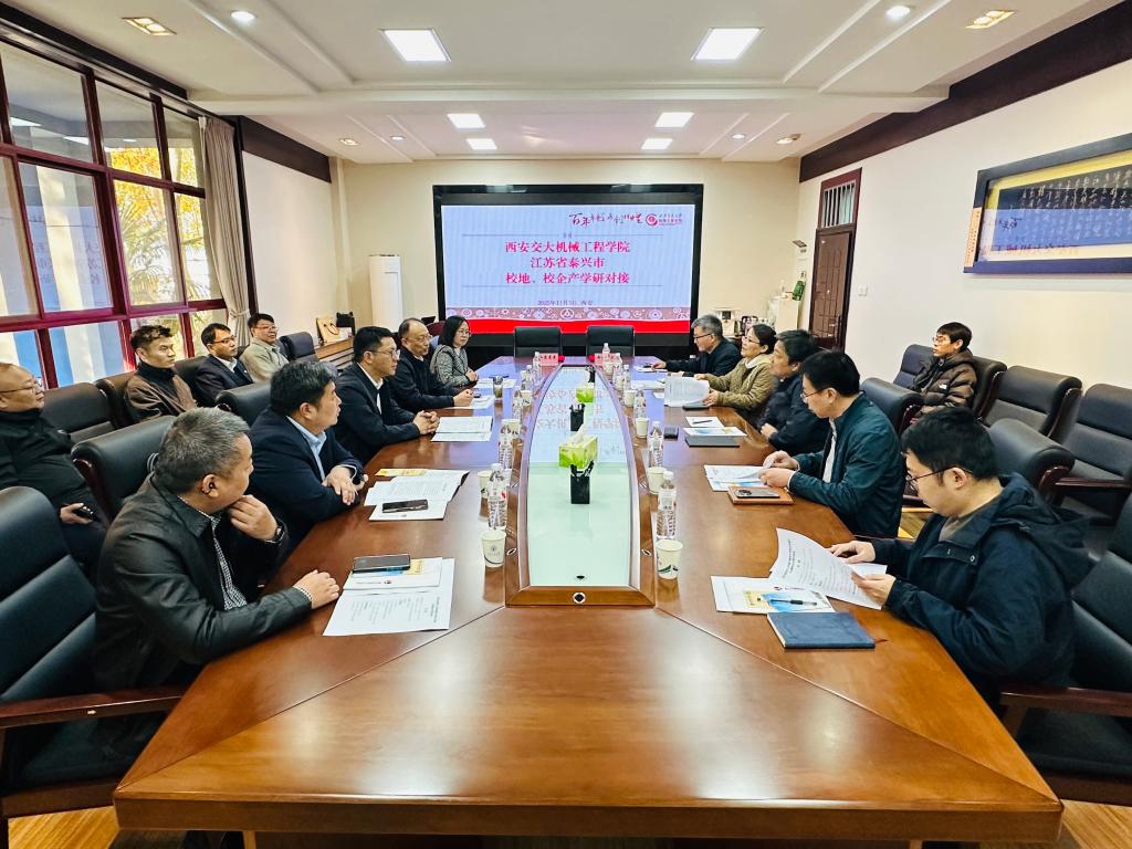 2025年11月3日上午,西安交通大学机械工程学院与江苏晨光数控机床有限公司产学研合作签约仪式暨校企对接交流会在兴庆校区西二楼顺利举行。泰兴市委常委、组织部部长赵俊率领政企代表团一行来访,校地企各方围绕科研合作、技术攻关与人才培养等议题展开深入交流。机械学院党委书记张俊斌、二级教授姜歌东、相关科研团队负责人以及工作人员参加了会议。