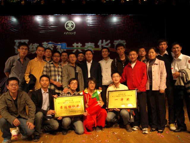 我院代表队由2010级的126名研究生组成,指挥郝婕,领唱张微,机械学院党委副书记訾艳阳、工会主席王朝辉、院办主任王收阁出席并参加了本次演出,凭借一曲《今天是你的生日,我的中国》赢得了满场观众的热烈掌声, 抒情豪迈的演唱,加上腰鼓队的激情舞蹈,使整个演出精彩纷呈。经过在场专业评委们的评审, 最终,以9.842分的最高成绩荣获了本次比赛的冠军.
