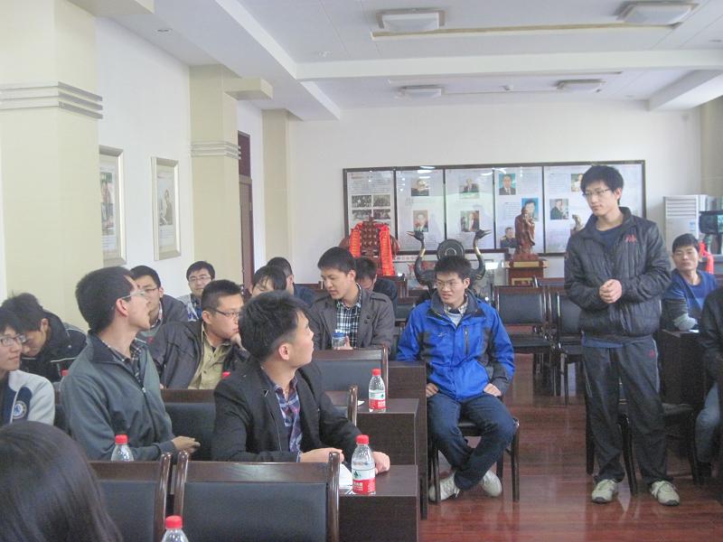 为迎接西安交通大学第十四届“十佳党支部及特色活动示范支部” 评选,机械学院硕2002班党支部于4月10号下午在机械学院楼第三会议室成功地举行了组织生活观摩会。此次生活会以自由辩论的形式展开,辩论的主题是:是否支持读博。会议由王金宇同志主持,彭康书院的刘丽、南亚娟老师莅临观摩指导。