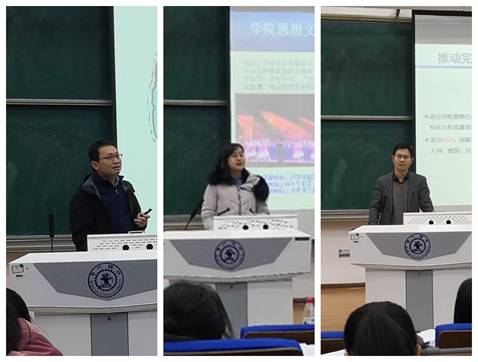 段玉岗副院长就自己分管的本科教学工作进行总结。2018年本科教学工作取得了可喜成绩,2019年我们依旧坚持以本为本,以学生能力培养为目标,持续投入经费并完善激励体制,让学院的本科教学上新台阶。周光辉副院长就自己分管的研究生教学工作进行总结。他指出2018年是研究生教学质量年,2019年是双一流建设冲刺年,我们继续进一步保障与提升研究生生源质量;继续推进培养方案与课程体系改革,实现分类培养;继续强化导师立德树人职责,建立培养质量、指导质量和招生指标的联动机制;多措并举为双一流贡献新增长。