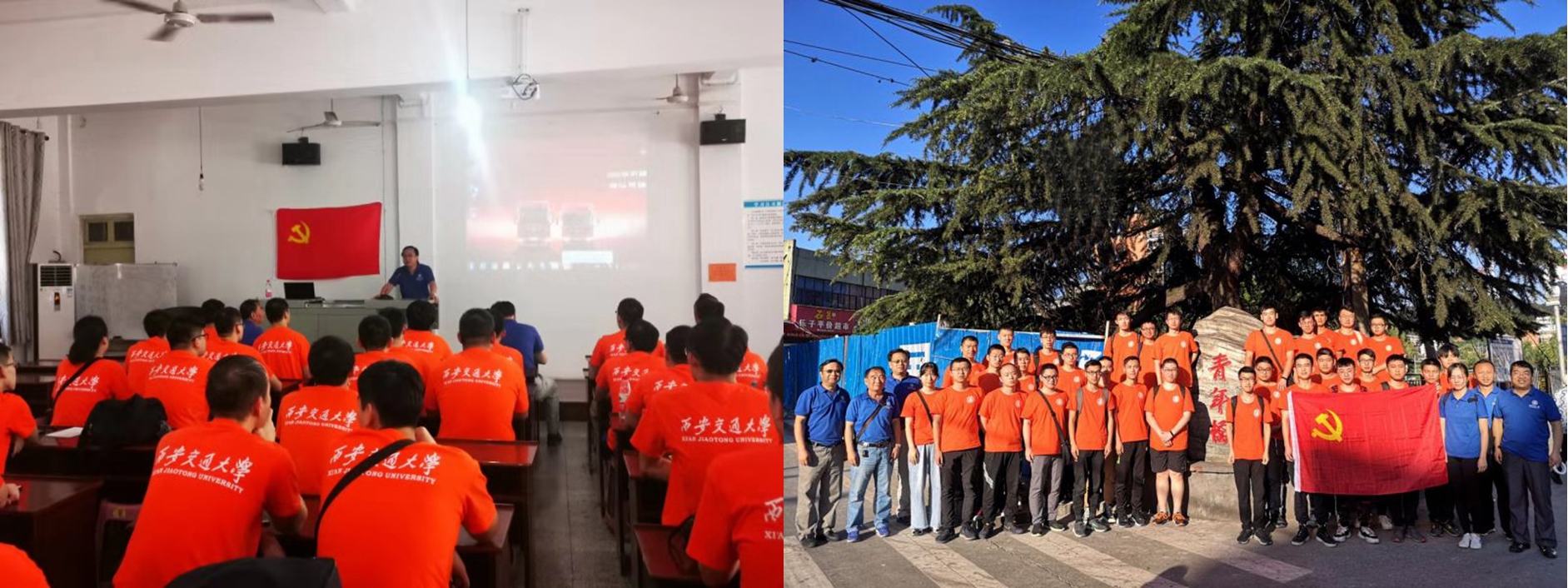 被多届生产实习队尊称为“铁队长”的机械学院实习队老队长、老党员张铁山老师分享了自己1982年学生时代来十堰参加生产实习的情况,以自己的亲身经历讲述了当年如何克服自带被褥、住茅草屋、蚊虫叮咬和十堰发大水等困难,并坚持完成实习任务的故事。学生党员孙逸凡同学代表全体学生党员和积极分子分享了自己的学习体会和实习感受,表示一定要向东风人学习,践行西交人胸怀大局、无私奉献、弘扬传统、艰苦创业的西迁精神,做全体同学的表率,珍惜实习机会,努力把理论与实践相结合,配合老师高效高质量地完成实习任务。
