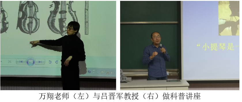 从认识提琴开始,万翔老师以大提琴的演化史为主线,生动地介绍了提琴的基本知识,引起了与会孩子们的强烈兴趣。随后,西北大学化学材料科学学院吕晋军教授作了“提琴与摩擦学”的报告,讲解了提琴发声过程中的物理学、力学及摩擦学知识,深入剖析了存在于提琴演奏中的摩擦学现象就像一座充满奥秘的迷宫,提琴的美妙除了弓-弦的作用外,离不开松香的粘性。对不同温度下松香的粘性解读,极大地拓展了与会家长和小听众的视野,讲解过程中大小听众踊跃互动交流。
