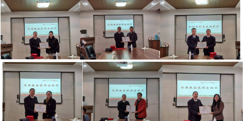 随后,王朝晖书记宣读获奖人员名单,为捐赠方代表蒋克俭老师献上鲜花,并为获奖人颁发荣誉证书。