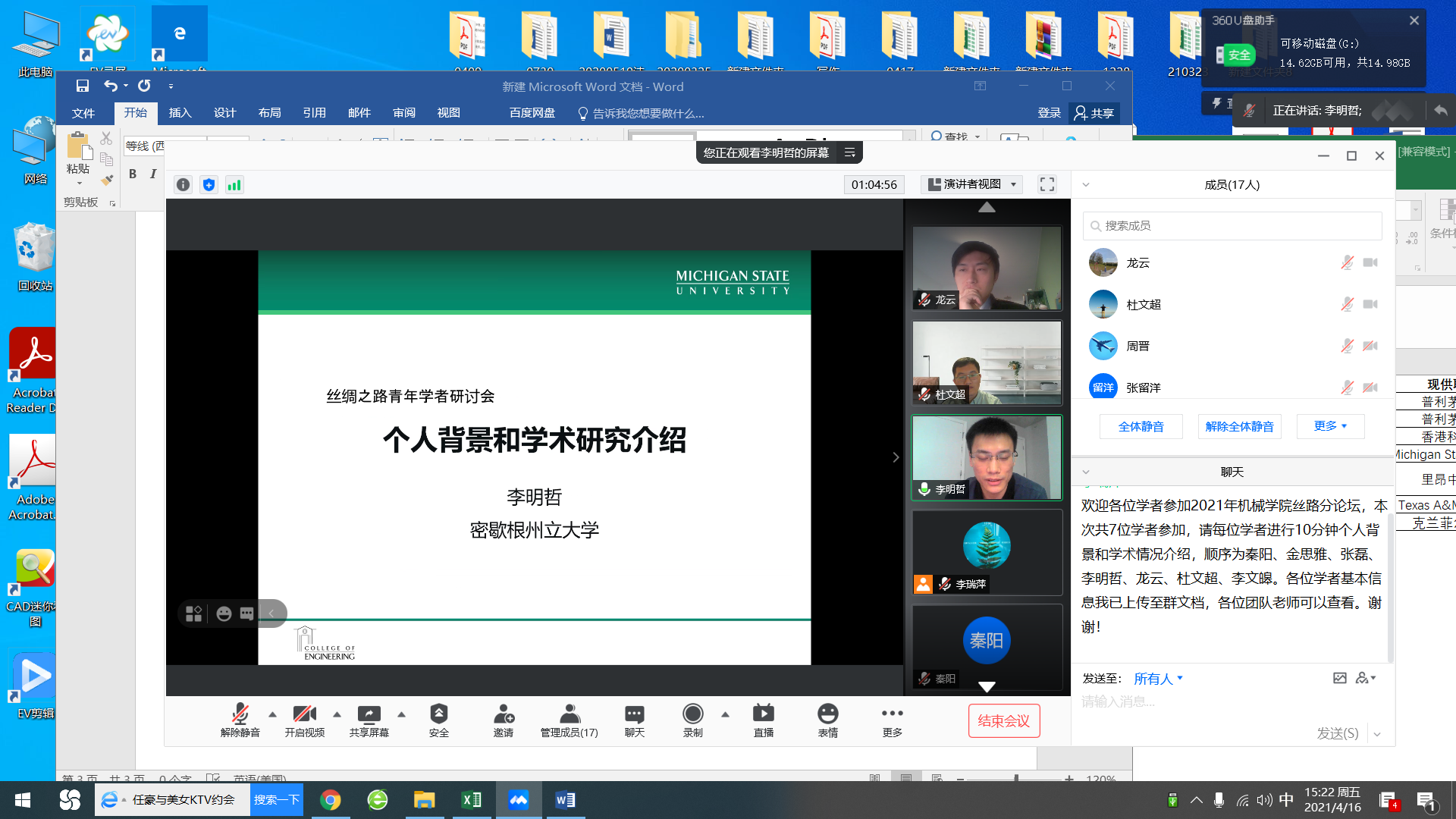 此次参加丝绸之路机械分论坛交流的青年学者来自美国、英国、法国等国家的著名高校及研究院,各位学者就个人背景及学术研究情况进行了介绍,关于复合材料、增材制造、润滑机理等最新前沿科技研究成果隔空传递。各位学者对于学科、工作环境、科研现状、实验设备以及创新港的建设速度和成果赞不绝口,会上咨询了很多关于人才计划的问题,纷纷表示希望学院能够推荐合适的岗位,早日加盟学院。