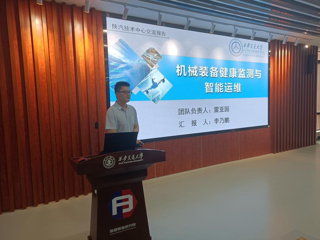 活动由设计科学与基础部件研究所党支部书记董光能教授主持。机械工程学院陈雪峰院长首先介绍了学院及各个研究所的科学研究、人才培养情况,期望推进研究生、本科生到企业实习,共同解决企业实际问题。陕汽技术中心王钊主任介绍了陕汽及汽车装备行业发展情况,以及推进“四新”经济中科技创新的重要意义,期望通过深化校企合作解决更多的“卡脖子”问题。之后装备智能诊断与控制研究所訾艳阳所长与设计科学与基础部件研究所杨雷副所长分别介绍了两个研究所的研究方向和技术成果。
