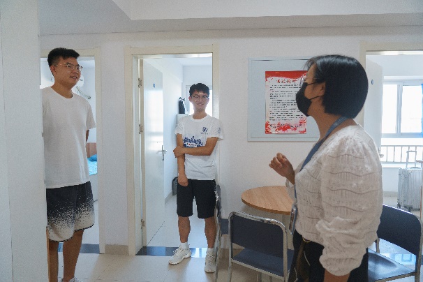 下午,机械工程学院党委副书记张敏,辅导员杨江坤在新生宿舍走访慰问2021级研究生新生。在走访中,张敏副书记和杨江坤老师与大家进行了细致的交流。张敏书记亲切地询问同学们的报道和生活情况,多次叮嘱同学们:“有任何困难,一定要及时联系辅导员,学院会尽量帮助到每一位同学”。学院的亲切慰问让新生们感受到了来自学院的温暖与关怀。