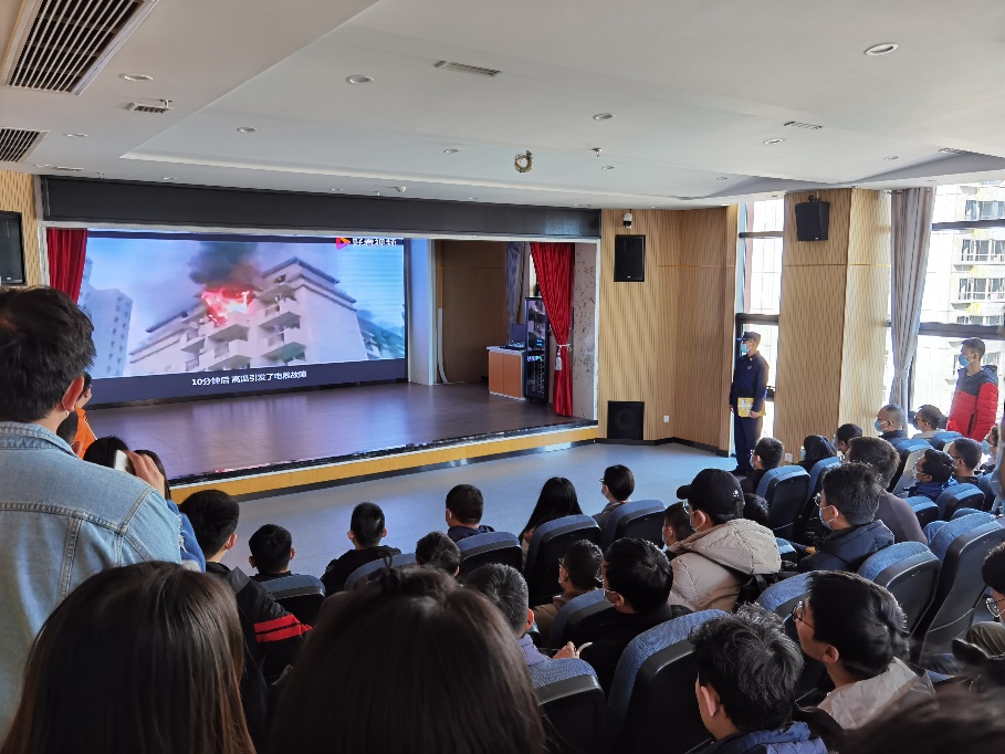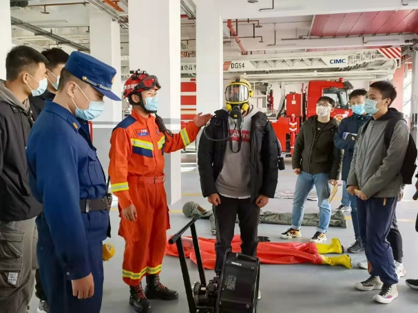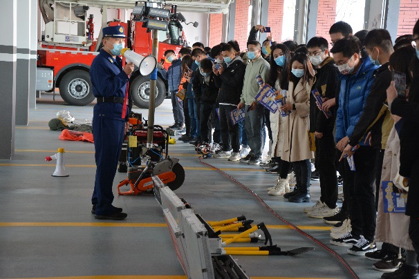师生们先后参观了消防救援站指挥控制室、指战员宿舍及各功能库室,在消防站红门影院观看了高校火灾典型案例。创新港消防站站长白云少讲解了灭火器的使用,火场逃生自救知识,并结合创新港实际情况提出了同学们宿舍区存在的部分典型消防安全隐患,督促大家自查改进。