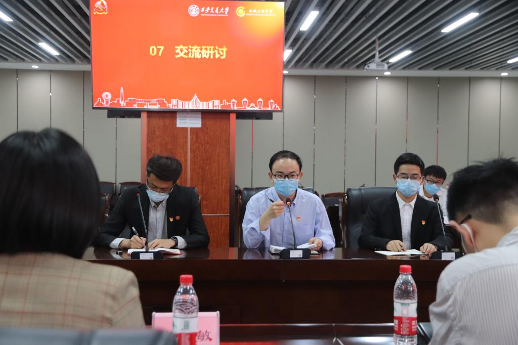 在交流研讨环节中,与会同志们纷纷提议,在后疫情时代可以考虑根据校区组建党支部;针对研究生理论学习质量的问题,大家应当更有效的利用学习强国、青年大学习等思政学习平台进行自主学习;在“党、团、班”三位一体管理的建设中,有必要建立并完善考核机制,从而提升党建、三会一课等方面的质量。