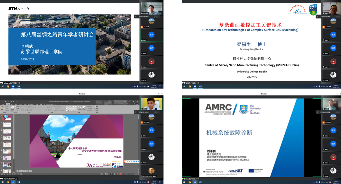 此次参加丝绸之路机械分论坛交流的青年学者分别来自瑞士、爱尔兰、法国、英国、德国、美国等国家的著名高校及研究院,各位学者就个人背景及学术研究情况进行了相关介绍,关于数控加工、故障诊断、先进设备大数据分析等最新前沿科技研究成果隔空传递,参会教师对于学者们的研究内容也提出了很多感兴趣的问题。各位学者对于学科、工作环境、科研现状、实验设备以及创新港的建设速度和成果赞不绝口,会上咨询了很多关于人才计划的问题,纷纷表示希望学院能够推荐合适的岗位,早日加盟学院。