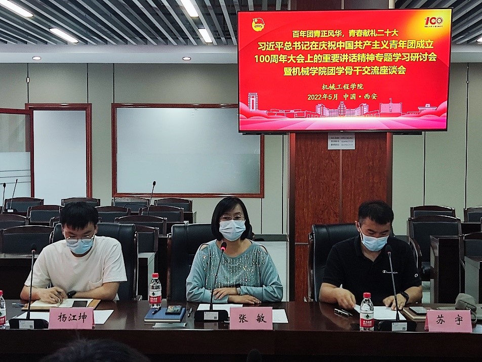 为深入学习贯彻习近平总书记在庆祝中国共产主义青年团成立100周年大会上的重要讲话精神,5月20日下午,机械学院 “百年团青正风华,青春献礼二十大”学习研讨会暨团学骨干交流座谈会在创新港2号巨构2-5008会议室召开。本次会议由团工委组织,出席本次会议的有机械工程学院党委副书记张敏、团工委副书记苏宇、杨江坤;机械工程学院团工委直属部门、研究生会、常代会、以及党建办公室学生骨干;2020级、2021级团支部骨干代表。