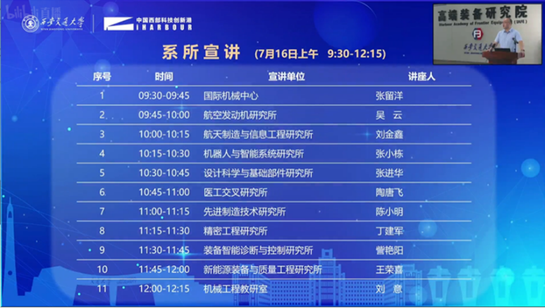 为贯彻落实疫情防控要求,本次夏令营仍采用线上方式进行,夏令营开营仪式于7月16日上午举行,机械工程学院院长陈雪峰教授、副院长周光辉教授、各研究所优秀教师代表以及来自清华大学、厦门大学、同济大学、上海交通大学、哈尔滨工业大学、东北大学、山东大学等众多高校的优秀学子共同参加了此次开营仪式。开营仪式在哔哩哔哩平台、思源学习空间、微博等多个新闻媒体同步直播,直播总浏览量达14.7万次。