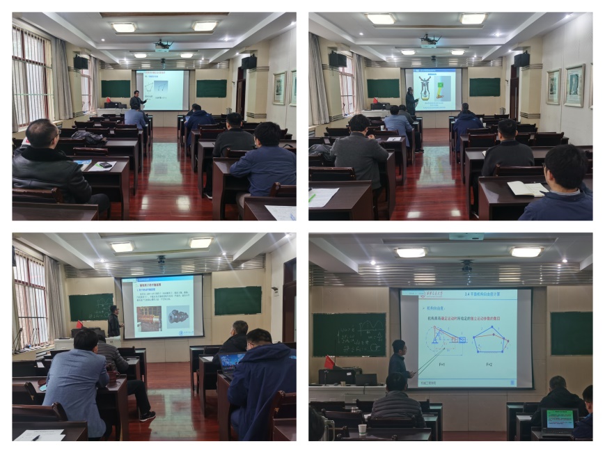 机械设计基础课程组每学期安排跟课教师由一名经验丰富的教师“一对一”进行专业指导,积极发挥学院“传帮带”的优良传统。同时跟课教师在学院要进行至少三次试讲,专家现场指导交流,发现问题,并帮助新教师及时改进。通过试讲活动,助力学院青年教师树立先进教学理念、重视本科教学、提升教学能力,提升人才培养质量。