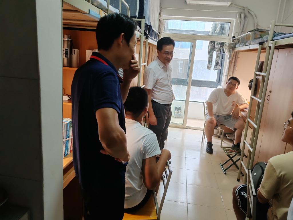 走进新生宿舍,张敏、王永泉一行受到学生和家长的热烈欢迎。张敏详细了解了同学们的籍贯、饮食和生活习惯,关切地询问同学们到校的住宿、军训准备及生活情况。张敏勉励同学们要尽快融入交大大家庭,珍惜大学时光、锚定人生目标,努力成长为优秀的交大学子。