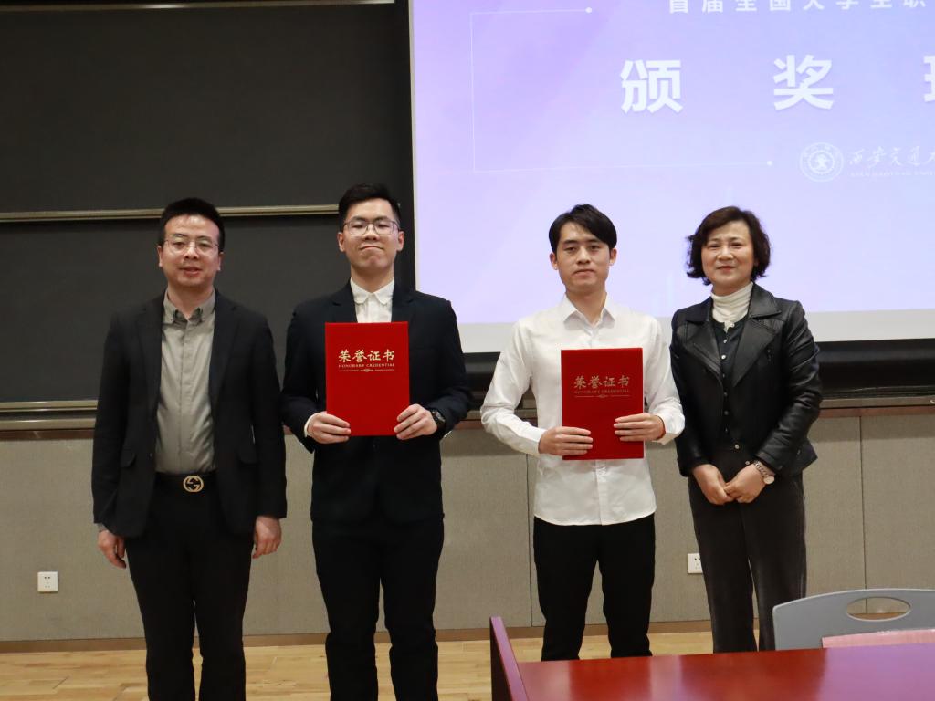 张敏宣读比赛结果,各位嘉宾为获奖选手颁奖并合影留念。一等奖裴智明,二等奖蔡沅录、李文平;三等奖乔苗苗、何泽华、赵宇柯、钟朝彬。