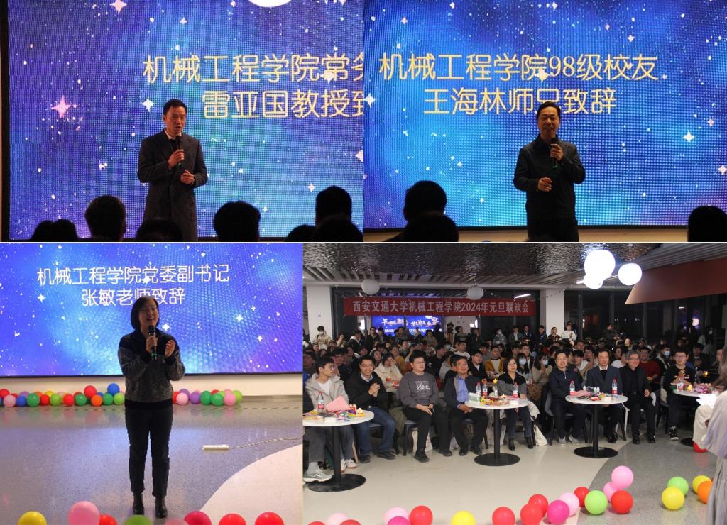为营造全体师生欢乐愉悦的生活氛围,共同迎接元旦的到来,机械工程学院在这个充满希望与喜悦的元旦时刻,举办2024年“星光璀璨温暖跨年”元旦联欢晚会。机械工程学院常务副院长雷亚国、党委副书记张敏、副院长崔健磊、办公室主任张新功、院长助理王荣喜、党委组织员包凯、优秀校友王海林等出席晚会,共同回顾过去,展望未来。