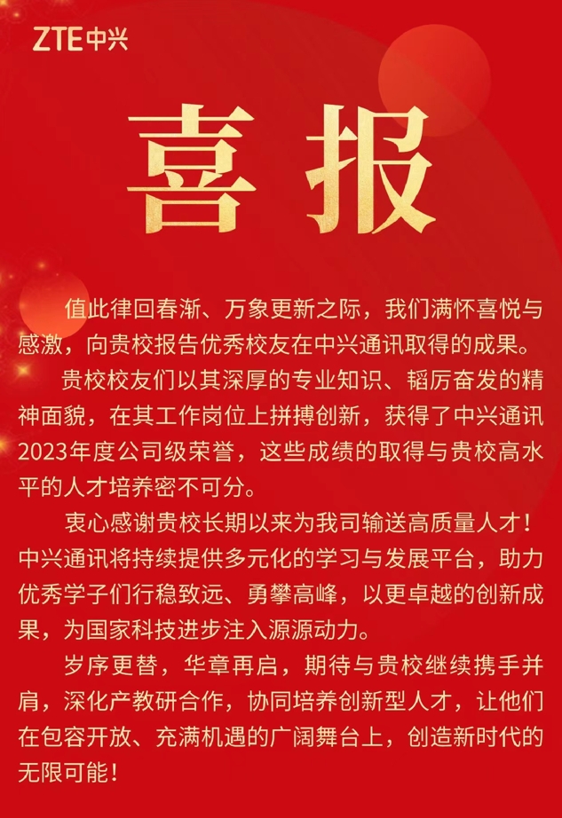 【喜报】我院校友获得中兴通讯2023年公司级奖项