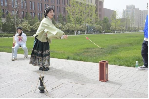 中华文化源远流长、历久弥新,工作人员经过精心策划和准备,游园会现场布置了品茶、五子棋、书法、扎染、中国结、香包、飞花令、面塑、投壶、踢毽子共十个文化摊位供同学们体验,其中在飞花令、踢毽子、投壶、五子棋游戏中增设了擂台赛游戏玩法让大家可以一展风采、勇跃登上“龙虎榜”,活动现场氛围火热。丰富多彩的活动吸引了广大师生参与,让师生从不同角度近距离欣赏和感受传统文化。