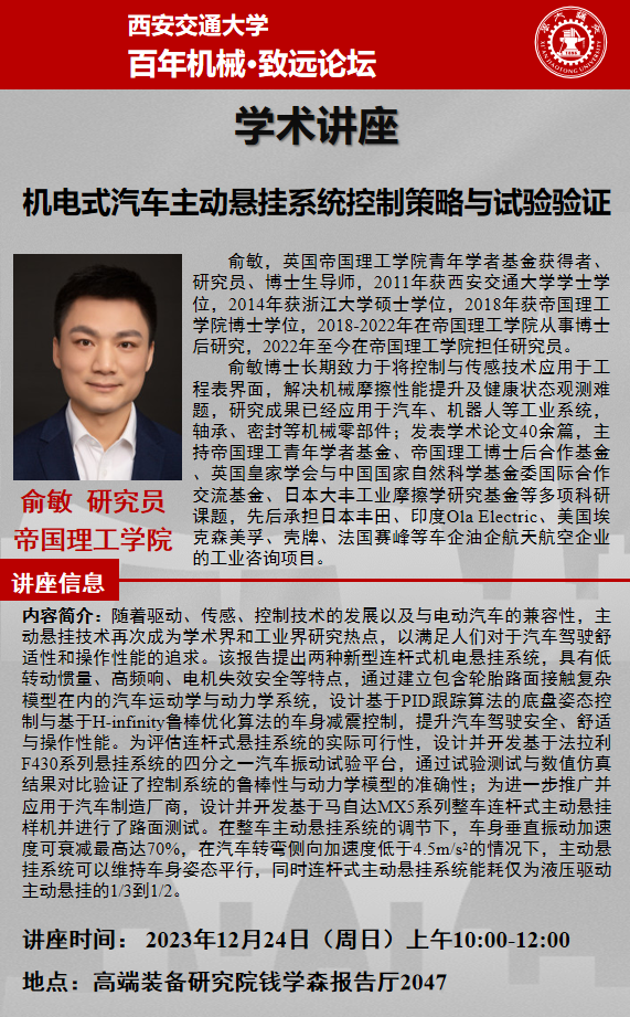 讲座地点:西安交通大学高端装备研究院钱学森报告厅2047