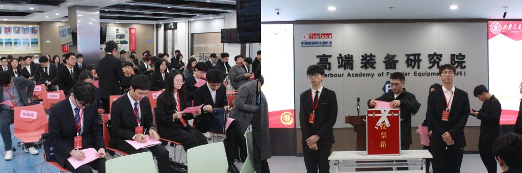 进入大会选举阶段,总监票人陈瀚森代表全体工作人员宣誓后,大会现场通过无记名投票的方式选举产生机械工程学院研究会新一届主席团、55名院级常任代表、27名校研代会代表。