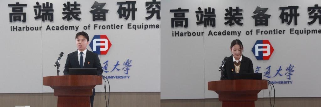 校研究生会主席团成员候选人熊峰致辞,他首先肯定了校院两级研会过去一年在思想引领、服务同学等工作中取得的成绩,特别是校研会当选全国学联第二十八届主席团团体单位,机械学院研会组织建设与服务质量突出。同时对机械研会的下一步工作提出了建议与期待。能源与动力工程学院研究生会主席团成员邓淼俐交流发言,她表示,能动学院与机械学院同源而出,相向而行,在学科建设、学院建设与学生工作等方面密切合作,培养了浓厚的兄弟情谊。在新时代的发展浪潮中,两院将继续携手共进,共同推进学校工科建设发展,为祖国的发展建设添砖加瓦。
