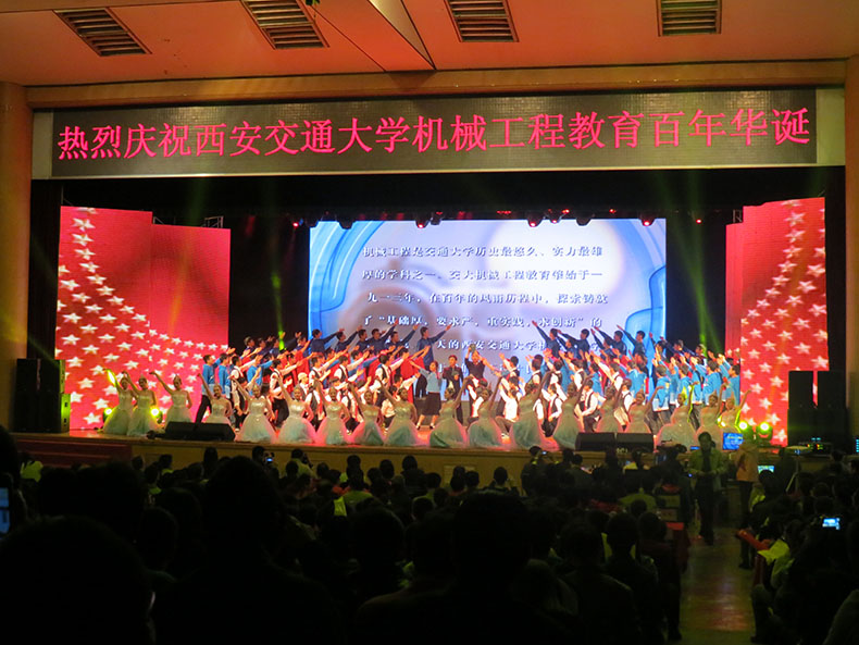 十年树木,百年树人。”4月6日晚,由西安交通大学机械工程学院、共青团西安交通大学委员会和西安交通大学文治书院共同举办的西安交通大学建校117周年暨机械工程教育100周年纪念文艺晚会在宪梓堂成功举行。西安交通大学副校长蒋庄德教授、党委副书记宫辉博士,机械工程学院党委书记梅雪松教授、常务副院长洪军教授,我校教师、返校校友,各书院、学院和行政单位的代表,以及广大本科生、研究生近2000人来到现场观看了晚会。