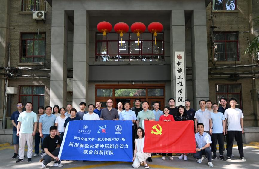 新型涡轮火箭冲压组合动力联合创新团队是西安交通大学与航天六院十一所共同探索的创新型、前瞻型校企深融创新团队,2021年在时任国防科工局潘爱华总工、陕西省军民融合办的见证下成立。联合创新团队围绕未来空天动力领域的制高点——重复使用航天运输系统组合动力装置开展十五年战略合作研究。团队突破机制体制壁垒,汇聚了机械、能动、材料、力学等跨学科力量,组建了“带头、核心、重点、后备”四支队伍,创立了“双两总+ 九张表 + 双导师”的创新模式,面向国家重大任务,校企协同关键核心技术攻坚,培养卓越工程技术人才。2023年9月,团队研制的某新型动力全球首飞试验取得圆满成功。