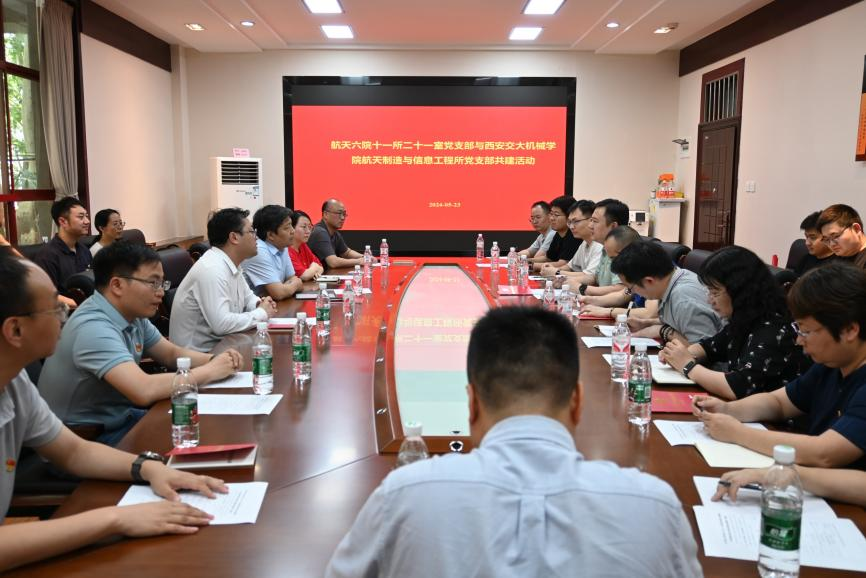 为发挥党建引领作用,推动支部共建协同发展、支部党建双向促进,5月23日下午,机械学院航天制造与信息工程研究所党支部与航天六院十一所二十一室党支部联合开展了主题为“党建引领聚能量,校企深融破难题”的支部共建活动,活动在西安交大兴庆校区机械学院第一会议室进行。机械工程学院党委书记张俊斌、副院长周光辉,航天六院十一所二十一室主任马元,航天制造与信息工程研究所支部书记翟智、所长刘金鑫及双方支部近30名党员同志参加了本次活动。本次活动由航天所支部书记翟智主持。