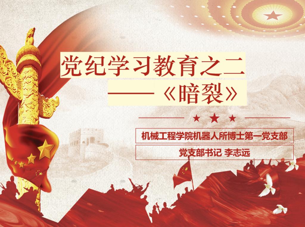 本次机器人所博士生第一党支部的主题党日组织大家一同开展了党纪学习教育违纪典型案例《暗裂》的学习,通过具体示例加强博士生党员对于遵守党纪法规的深度认知,从内心深处建立起坚定的原则和防线。支部成员一致表示对党纪党风有了更深刻的认知,将严格恪守学术道德,努力科研,为国家工业的繁荣昌盛贡献自己的一份力量。