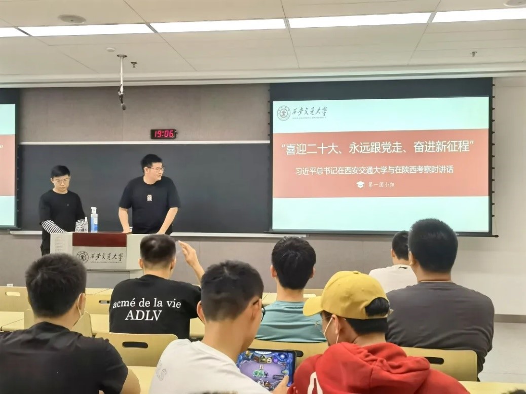 在习近平总书记在西安交通大学与在陕西考察时讲话的学习分享中,小组成员为同学们讲述了习近平总书记在陕西和西安交通大学考察过程中的讲话内容、西迁的过程和西迁精神以及当代研究生的时代担当和奋斗的方向。新时代中国青年要继续发扬五四精神,要树立对马克思主义的信仰、对中国特色社会主义的信念、对中华民族伟大复兴中国梦的信心,到人民群众中去,到新时代新天地中去,坚持爱国和爱党、爱社会主义高度统一,让理想信念在创业奋斗中升华,让青春在创新创造中闪光。以实现中华民族伟大复兴为己任,不辜负党的期望、人民期待、民族重托,不辜负我们这个伟大时代。作为交大学子,我们一定要坚定信念、牢固意识、强化使命、勇于担当,学习和弘扬西迁精神,将弘扬西迁精神落实在具体行动中,抓住新时代新机遇,到祖国最需要的地方建功立业,在新征程上创造属于我们这代人的历史功绩。