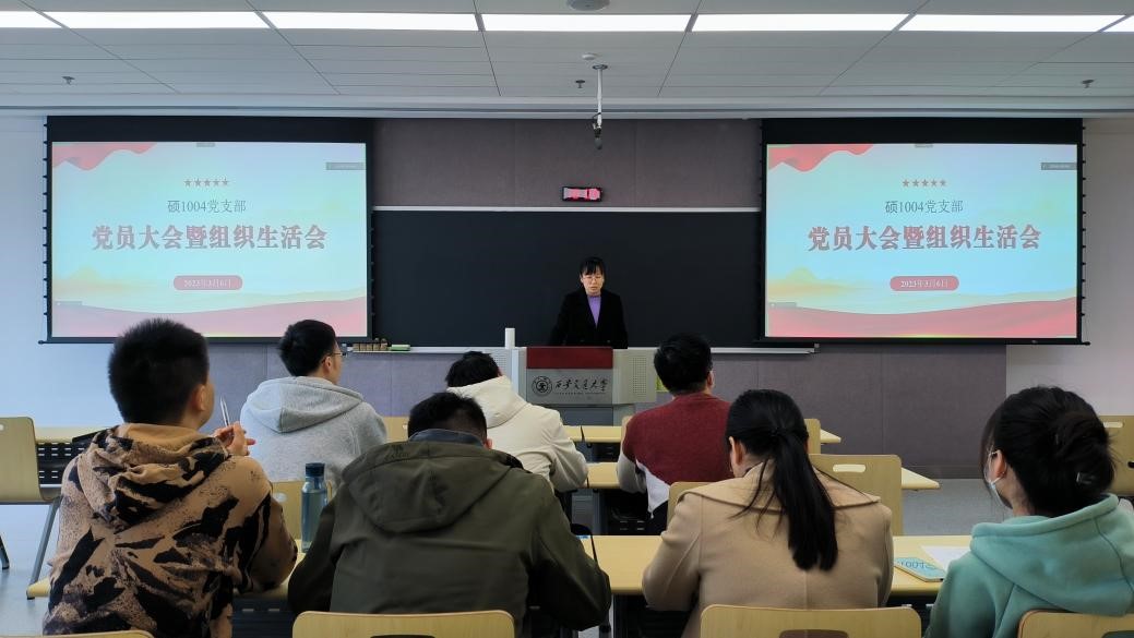 为引领带动广大党员认真学习习近平新时代中国特色社会主义思想,听取习近平总书记对深入开展学雷锋活动作出的重要指示,总结过去,展望未来,再接再厉,奋勇前行,3月6日,机械工程学院硕1004党支部召开了党员大会暨组织生活会。会议由硕1004党支部书记刘桂蕾同志主持,全体党员参加,创新港校区党员在二号巨构6003教室参会,曲江校区党员在西五楼A328会议室线上参加,会议主要分为三个部分:一是学习“把雷锋精神代代传承下去——纪念毛泽东等老一辈革命家为雷锋同志题词六十周年”座谈会,二是对2022年度党支部工作进行总结回顾,三是进行民主评议党员。