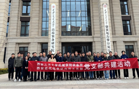 2024年12月7日,西安交通大学机械学院装备所党支部与西安近代化学研究所工艺部党支部在西安交通大学创新港校区开展党支部联建共建活动,本次活动以高质量党建服务高质量业务发展为主题,通过聚焦技术交流,促进双方合作,推动业务“同频共振”发展。机械学院党委书记张俊斌参加共建活动。