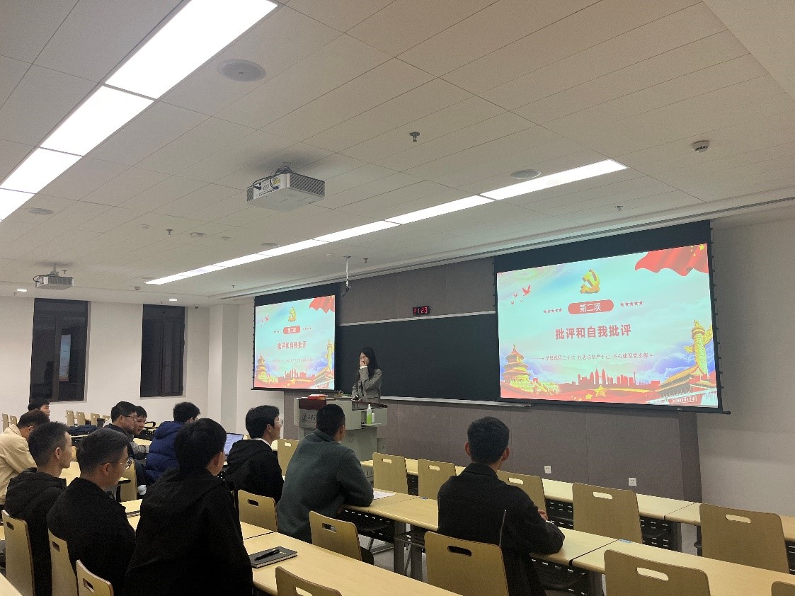 支部内部开展批评与自我批评,全体党员采取个人自评、党员间互相评的方式,从生活作风、理论学习、科研工作、志愿服务等多个方面的进行反思,对彼此不足之处提出批评及改正建议。进一步提高了支部内部自我约束、互相监督的良好风气。