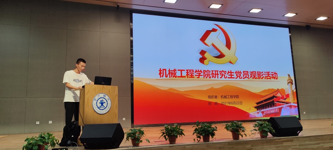 今年是中国共产党成立100周年,在建党节来临之际,为了培养学生党员的爱党情怀,使学生党员对党的历史和初心使命有更深层次的理解。6月22日晚,机械工程学院开展了集体党史教育观影活动,组织学生党员集中观看了《建党伟业》,既为学生党员送上了一场视觉盛宴,同时也为大家上了一堂特殊的“党课”,活动由机械学院党建办公室理论实践部组织。