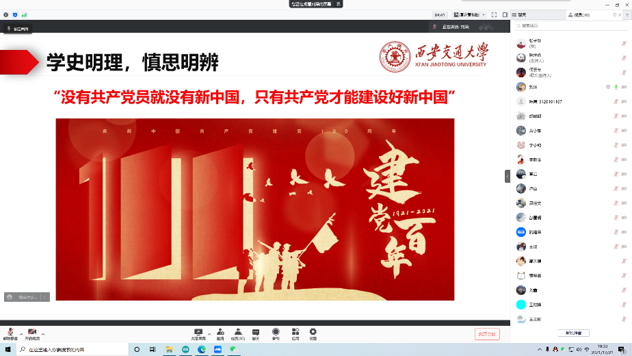 党史是中国共产党自诞生以来领导中国人民为实现中华民族伟大复兴而进行的探索史、奋斗史、创业史,是全体中国人民智慧的结晶。2021年是中国共产党成立100周年。为从党的百年奋斗重大成就和历史经验中汲取继续前进的智慧和力量,全面贯彻新时代中国特色社会主义思想,深刻领悟“两个确立”的决定性意义,巩固深化“不忘初心、牢记使命”主题教育成果,12月21日晚,硕0004支部举办线上党史读书分享会,四位同学分别就自己所读的党史书籍同大家进行交流。